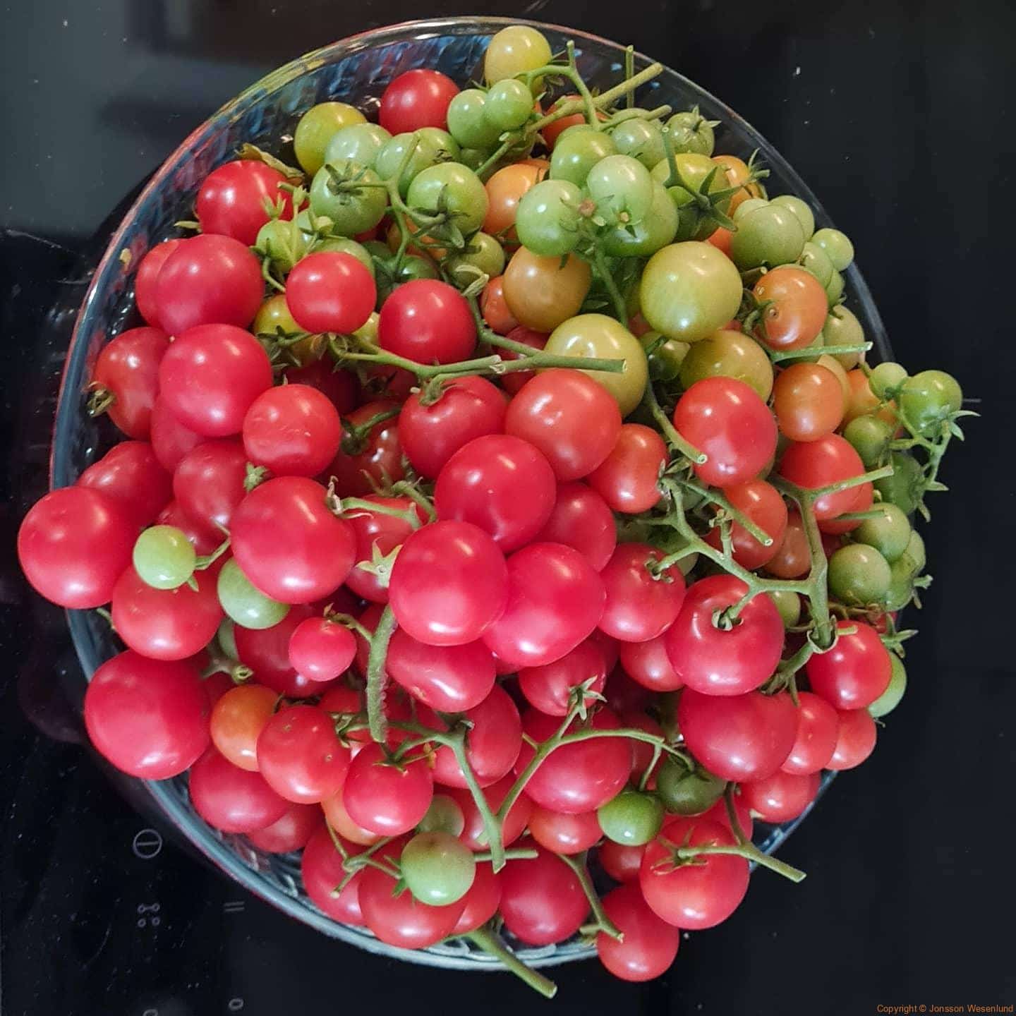 Gurkorna blir det lite många av (grannarna blir glada), sallad i olika former, basilikan (kom inte med på bild) men den är präktig, blandkrukan med både persilja, timjan och gräslök har blivit stor och kom inte heller med på bild. Potatis har vi sått men det blev inte som förra året men helt ok.