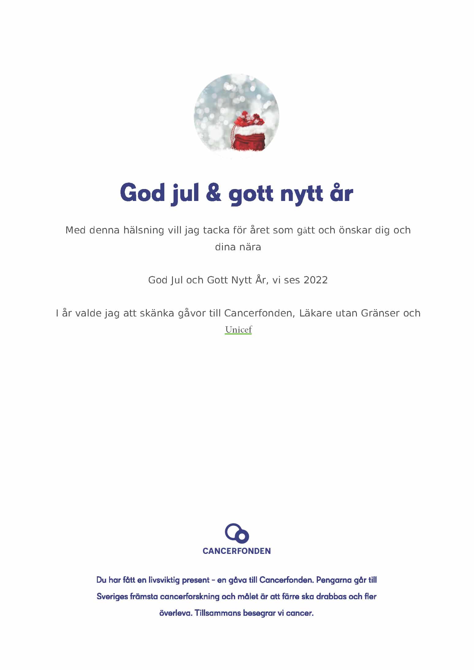 Vi, KA, jag och självklart också Kurt och Mannfred, vill tacka för allt stöd både med och utan samtal, meddelanden, spontana besöka både med och utan utefika, blommor, presenter, hemlagad mat vi fått, julkorg laddat med kärlek, godsaker och klappar, praktisk hjälp och erbjudande om densamma, hjälpen med att tömma altan och annat. Stödet vi känt från er har varit stort och vi är så tacksamma. Vi vill också rikta ett särskilt tack till barnen som satt kompassen för vägen framåt.